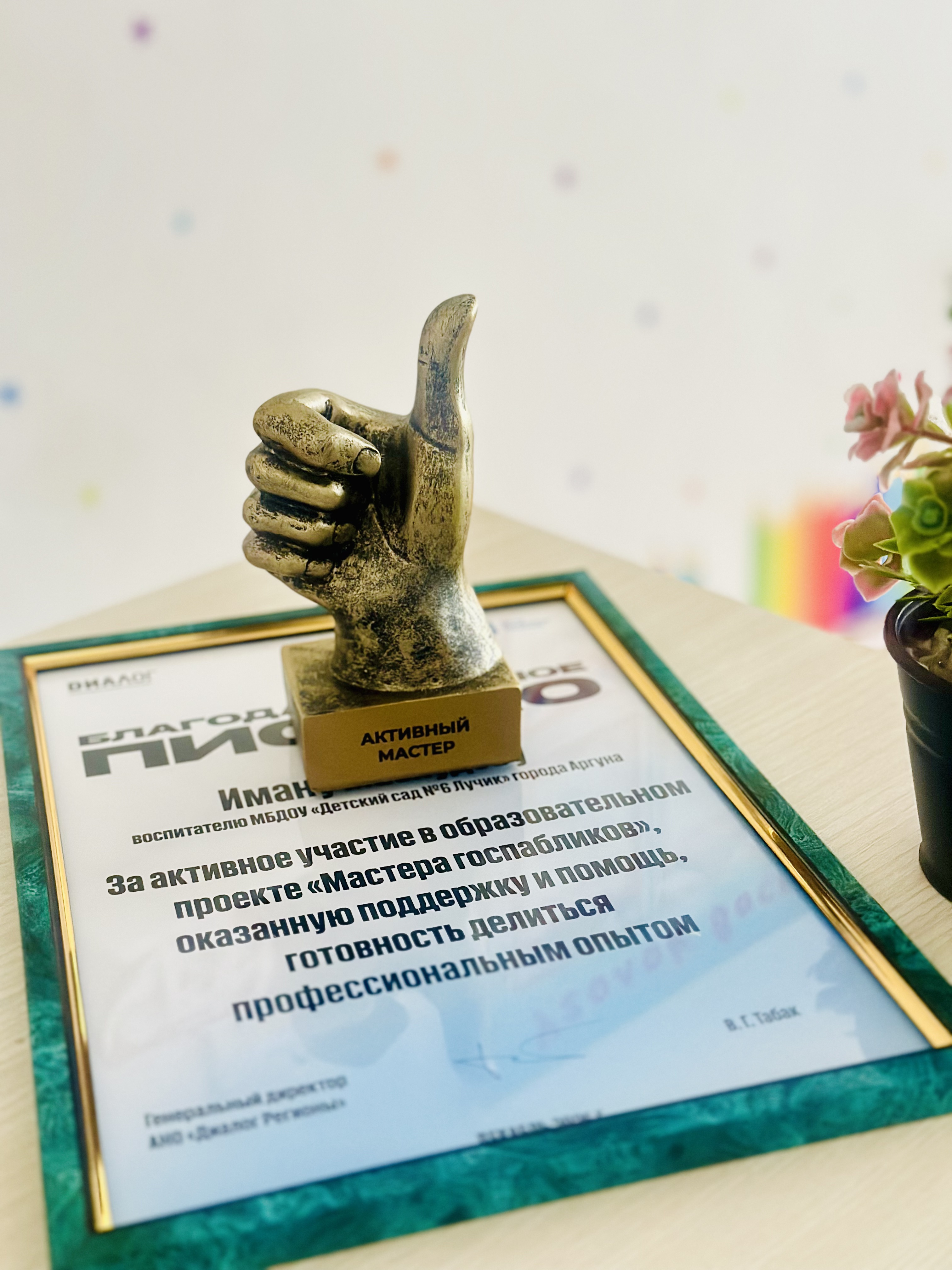 Руководитель образовательной организации, заведующий – Сотаева Яха Сулеймановна Персональный состав педагогических работников с указанием уровня образования, квалификации и опыта работы. Материально-техническое обеспечение образовательной деятельности – имеется медицинский кабинет. Условия питания: организовано в групповых комнатах. Весь цикл приготовления блюд происходит на пищеблоке. Все блюда готовятся на кухне детского сада.