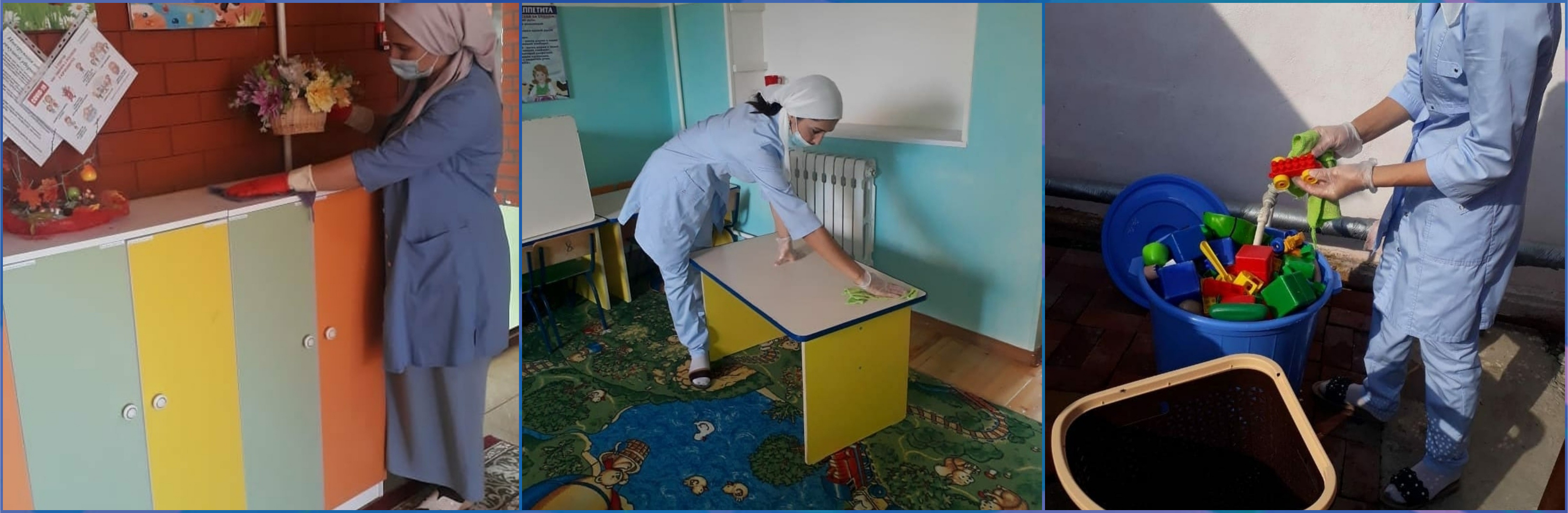 Сегодня в саду состоялась еженедельная генеральная уборка с применением дезинфицирующих средств.