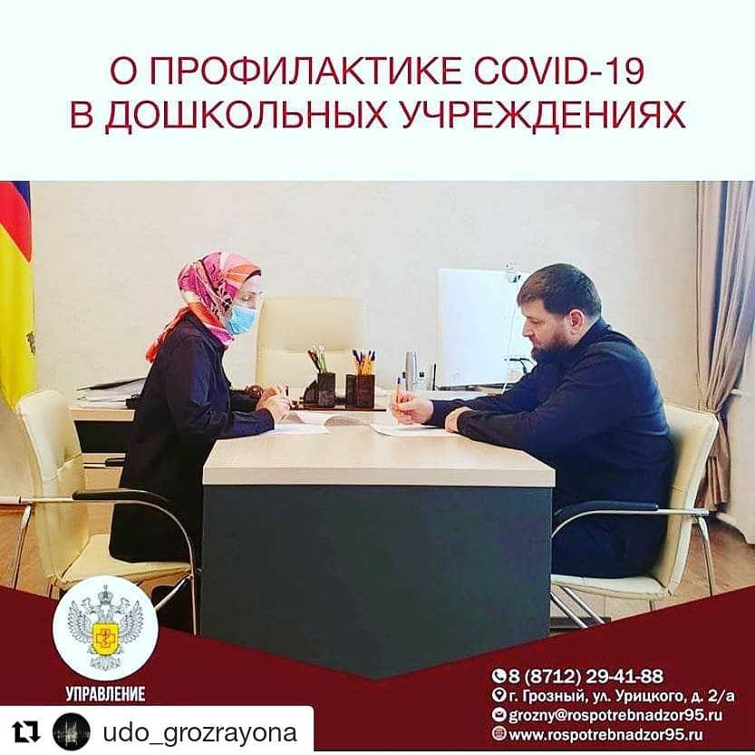 По итогам состоявшейся беседы принято решение усилить санитарно-просветительскую работу среди родительского сообщества, а также сотрудников детских дошкольных организаций по мерам против заноса и распространения новой коронавирусной инфекции в организованные детские коллективы.⠀Так, во всех детских дошкольных учреждениях республики организован входной фильтр: дети с малейшими признаками острой респираторной вирусной инфекцией не допускаются.⠀Также проводятся мероприятия по дезинфекции во всех детских дошкольных организациях республики с обработкой всех контактных поверхностей, проведением обеззараживания воздуха помещений.⠀Напомним, что соблюдение рекомендаций Роспотребнадзора продолжается в связи с сохраняющейся опасностью распространения COVID-19._____________________________Управление Роспотребнадзора по Чеченской Республике📲 горячая линия по COVID-19:8 (989) 916-72-348 (938) 989-07-58📍 ЧР, г. Грозный, ул. Урицкого, д. 2/а☎️/📠 8 (8712) 29-41-88✉️ grozny@rospotrebnadzor95.ru🌐 www.rospotrebnadzor95.ru