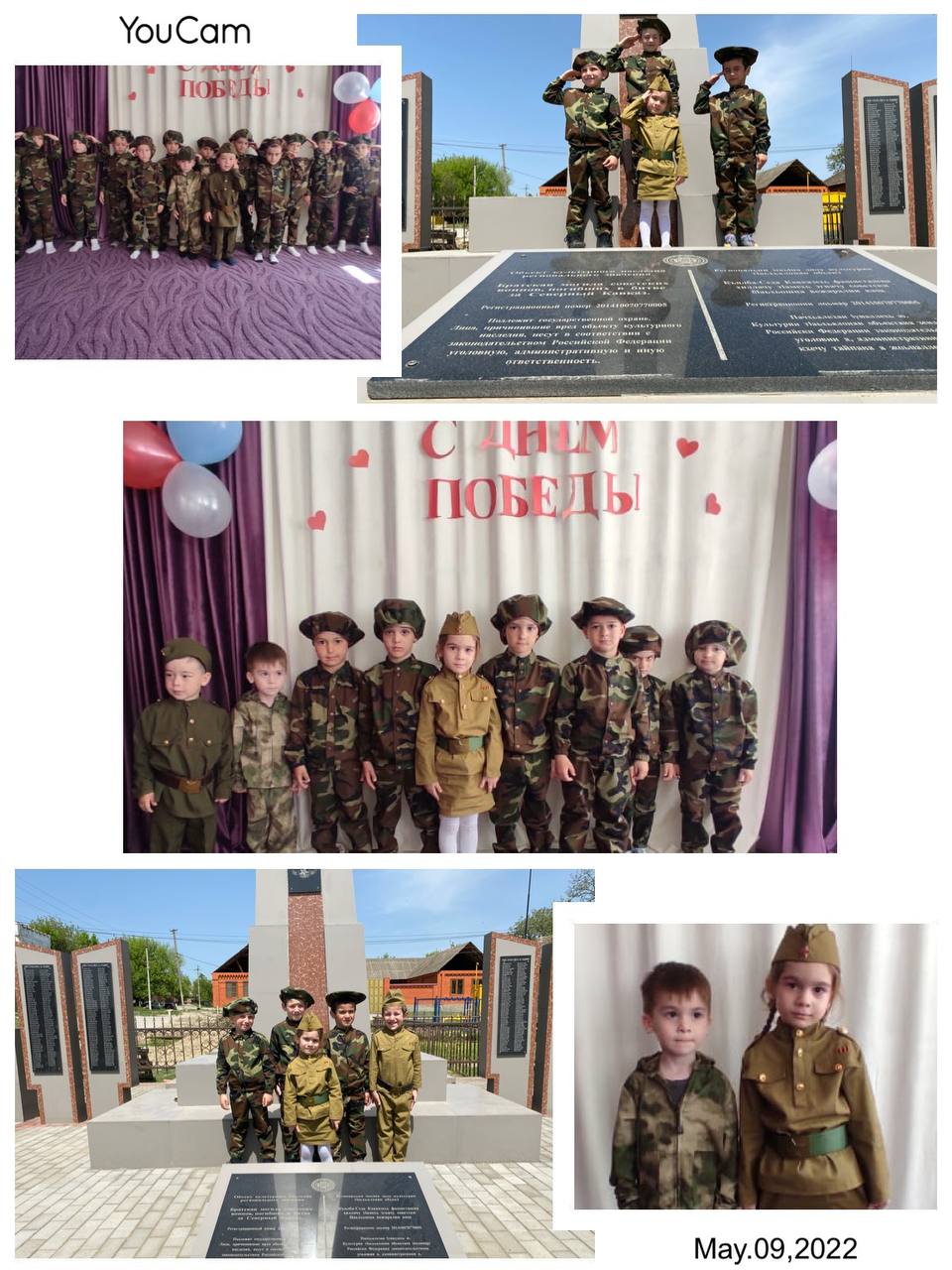День Победы — это праздник, важный для каждой семьи и каждого гражданина, любого человека, любой страны в мире. Сложно найти человека, которого бы никоим образом не коснулась ужасная война, унесшая жизни миллионы солдат и мирных граждан. Эту дату никогда не вычеркнут из истории, она останется навечно в календаре, и всегда будет напоминать о тех страшных событиях и великом разгроме фашистских войск, прекратившем ад на Земле. В связи с этим в нашем детском саду состоялось мероприятие, посвященное празднованию Дня Победы. Предварительно с детьми в группах были проведены занятия и беседы о подвигах советских людей, также с детьми была организована экскурсия к памятнику Славы.