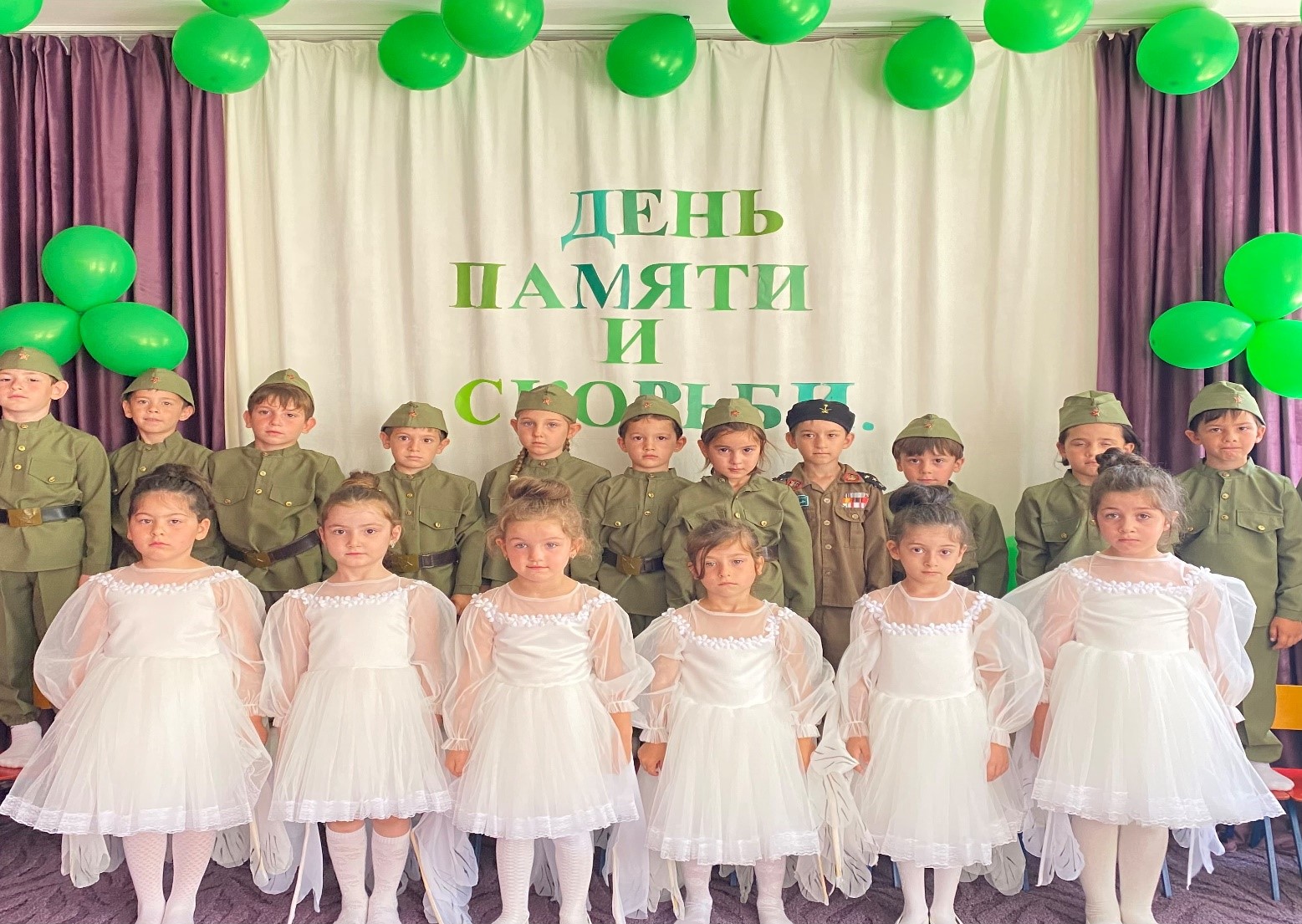 21 июня 2022 года в День памяти и скорби проведено познавательное мероприятие посвященное Дню Памяти и Скорби. Дети посетили памятник «Вечной славы» в местном парке. Дети читали стихотворения о подвиге нашего народа, о родной стране, о мире, играли в игры "Военная дорога". Под девизом "Хотим под мирным небом жить" были выпущены воздушные шары.