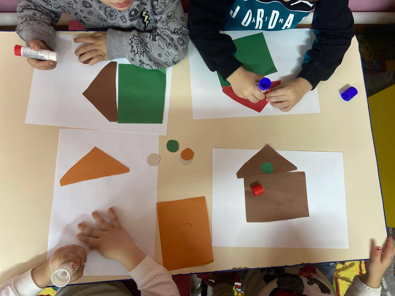 Цель: учить наклеивать изображения круглой формы, уточнять названия формы,чередовать круги по цвету, закреплять знания цветов(красный,желтый, синий).