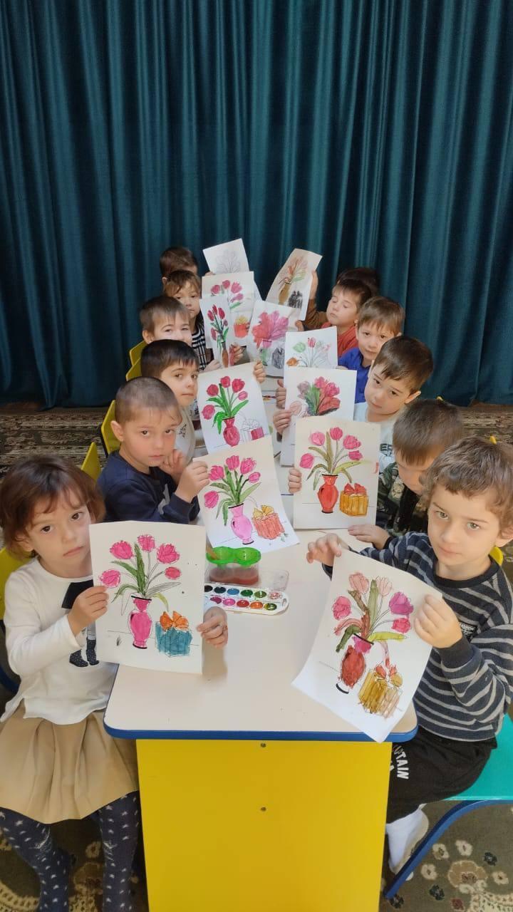 Средняя группа "Бабочки"Художественно-эстетическое развитие (рисование).Тема: Ваза с цветами.Цели: создавать в рисунке сюжетную композицию.