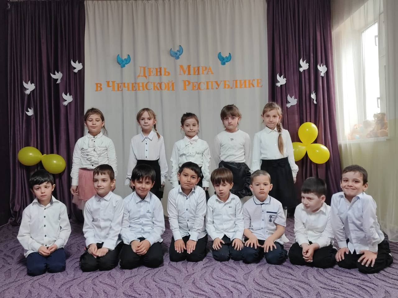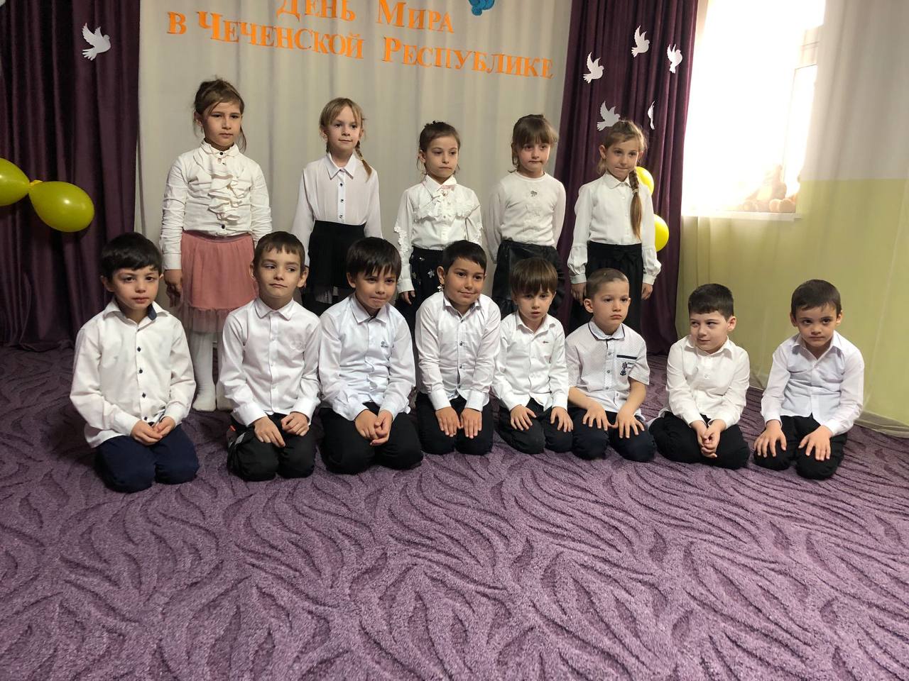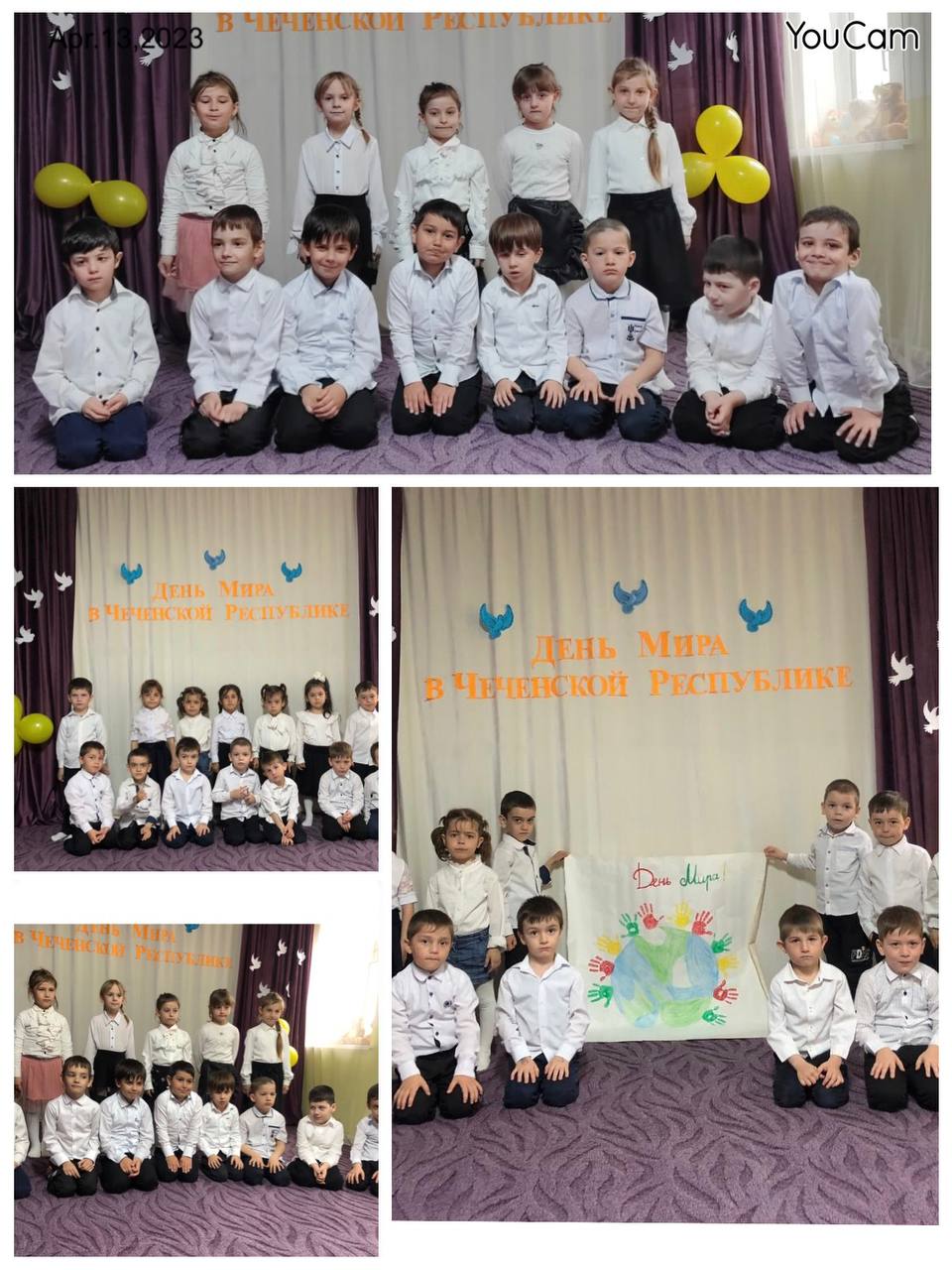 В нашем ДОУ в этот день были проведены мероприятия, на которых воспитатели призывали малышей быть добрыми, жить в мире, дети изготовили из бумаги голубей, слушали песни, читали стихотворения о мире.
