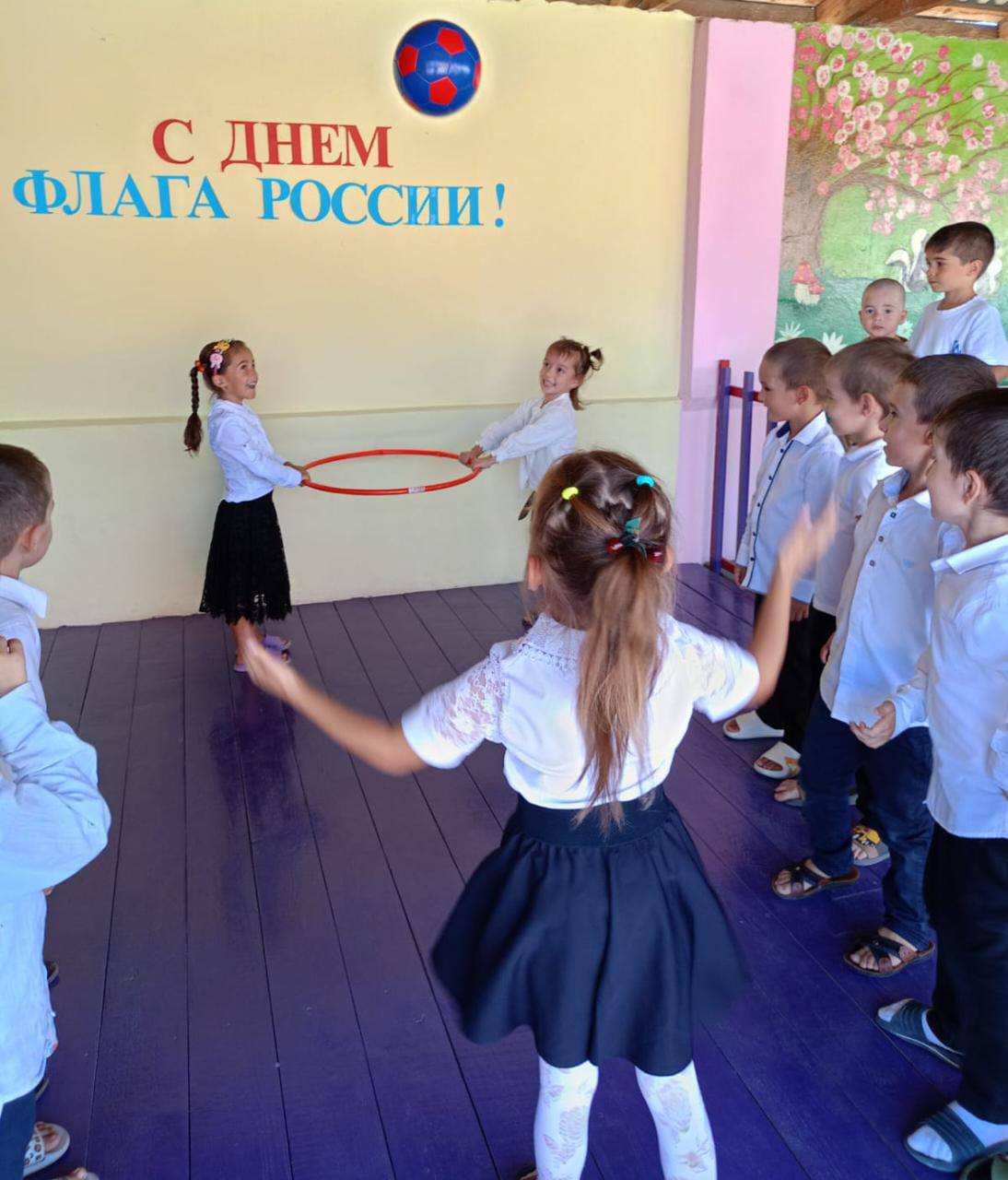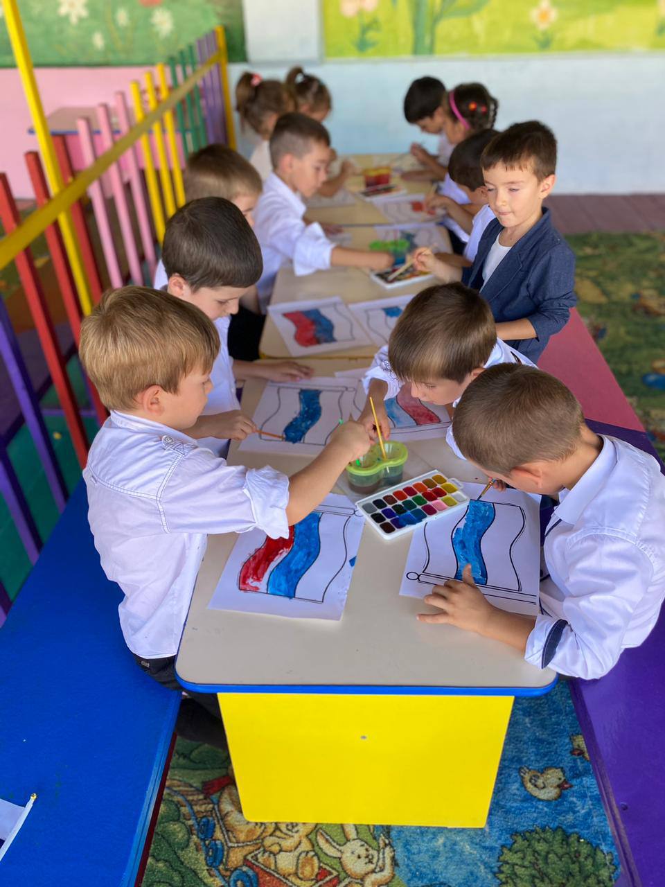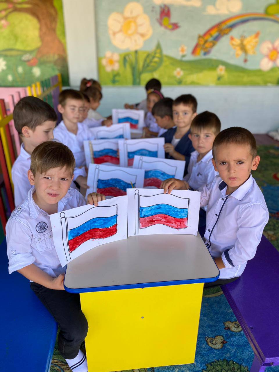 Цель: воспитание патриотизма, уважительного отношения к флагу нашей страны, воспитание любви к природе родного края, закрепление зрительных представлений о Российском флаге.