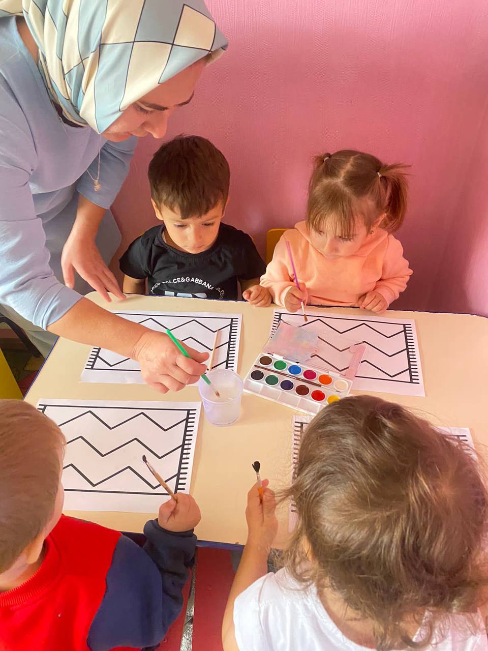 Цели: познакомить с красками и кистью; учить рисовать кистью прямые линии,правильно держать кисть при рисовании; дать возможность детям выбрать краску любимого цвета;воспитывать интерес к рисованию.