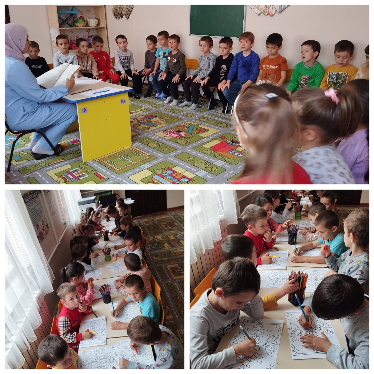 Старшая группа "Ласточка" Тема:Русская народная культура. Рисование "Укрась платочек ромашками".
